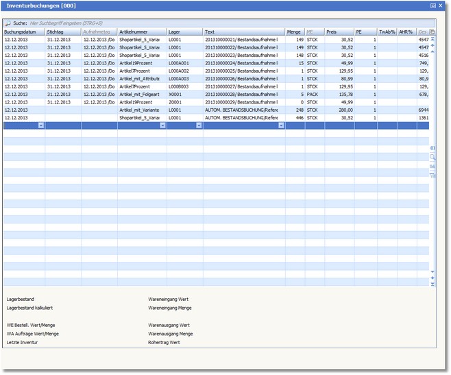 << Hier KLicken um eine Inhaltsübersicht anzuzeigen >> Navigation: Warenwirtschaft > Lagerverwaltung > Inventur > Inventur bewerten/verbuchen > Buchungsliste |