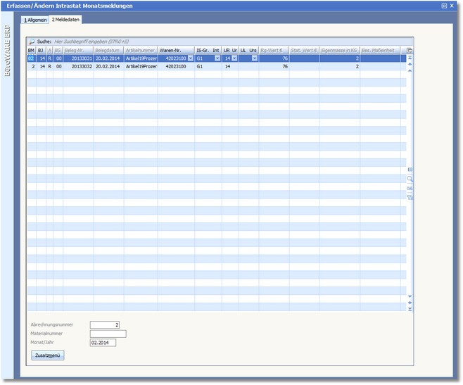 << Hier KLicken um eine Inhaltsübersicht anzuzeigen >> Navigation: Warenwirtschaft > Extras > Intrahandelsstatistik > Bearbeiten von Monatsmeldungen > Die Karteikarte "Meldedaten" |