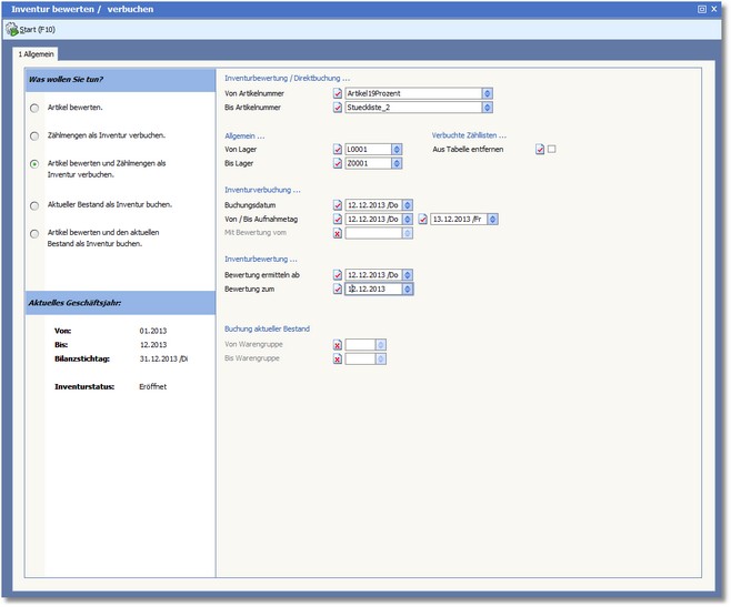 3. Nach Eingabe der notwendigen Daten starten Sie die Inventurverbuchung mit [F10].