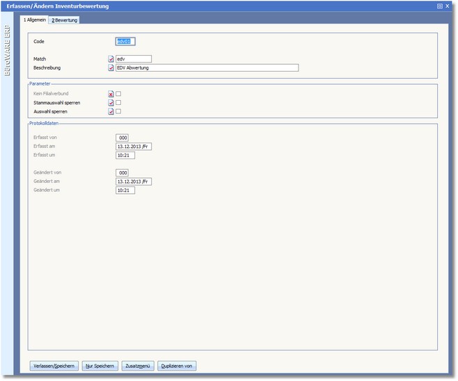 << Hier KLicken um eine Inhaltsübersicht anzuzeigen >> Navigation: Warenwirtschaft > Lagerverwaltung > Inventur > Inventurbewertungssätze > Karteikarte "Allgemein" |