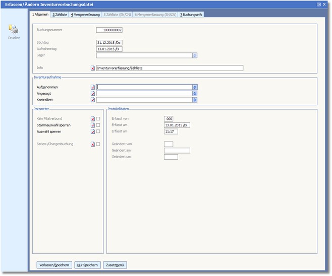 << Hier KLicken um eine Inhaltsübersicht anzuzeigen >> Navigation: Warenwirtschaft > Lagerverwaltung > Inventur > Zähllisten > Karteikarte "Allgemein" |