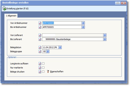 In der Auswahltabelle werden jetzt nur die Bestellbelege angezeigt, welche mit einem Doppelklick bzw. der [RETURN]-Taste wunschgemäß bearbeitet werden können.