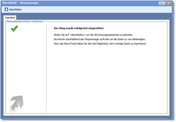 Bei erfolgter Artikelübernahme erhalten Sie eine Meldung, dass der Shop erfolgreich eingerichtet wurde.
