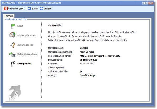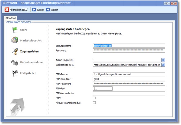 Nachfolgend wird beschrieben, wie die Einrichtung eines Gambio-Marketplaces im Shopmanager der BüroWARE erfolgt.