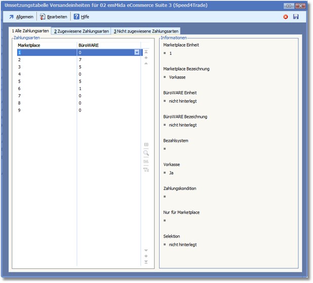 Navigation:  Warenwirtschaft > Extras > Shopmanager > Marketplaces > emMida > Marketplace verwalten > Umsetzungstabellen >