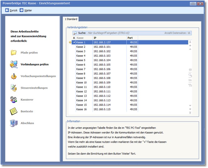 Navigation:  BüroWARE Powerbridge > TEC-Kassenschnittstelle > BüroWARE-Schnittstelle einrichten >