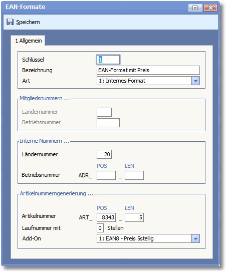 3. Legen Sie nun in der Auswahltabelle der EAN-Formate mit [F3] ein neues EAN-Format an, dabei sind folgende Felder zu beachten: