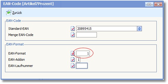 Diese Einstellung wird benötigt, da sich der EAN bei dieser Anforderung aus einem 8-stelligen EAN + 5-stelligen Preis zusammensetzt.