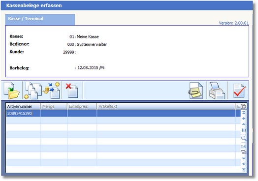 6. Nun können mit dem Artikel Barbelege erfasst werden. Scannen Sie nun in BüroWARE Kasse einen Artikel mit EAN-Code ein.