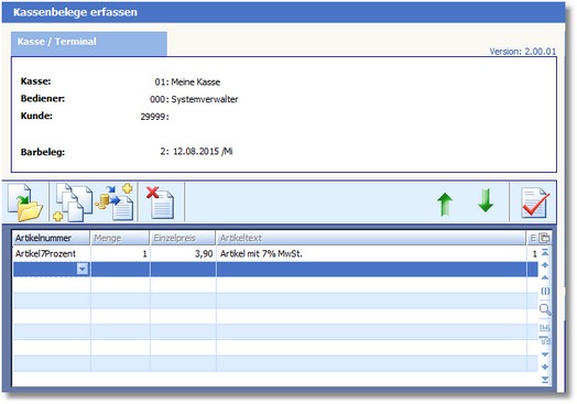 7. Bestätigen Sie nun die Eingabe mit [RETURN], wird der Artikel erkannt und automatisch dieser Preis eingesetzt.