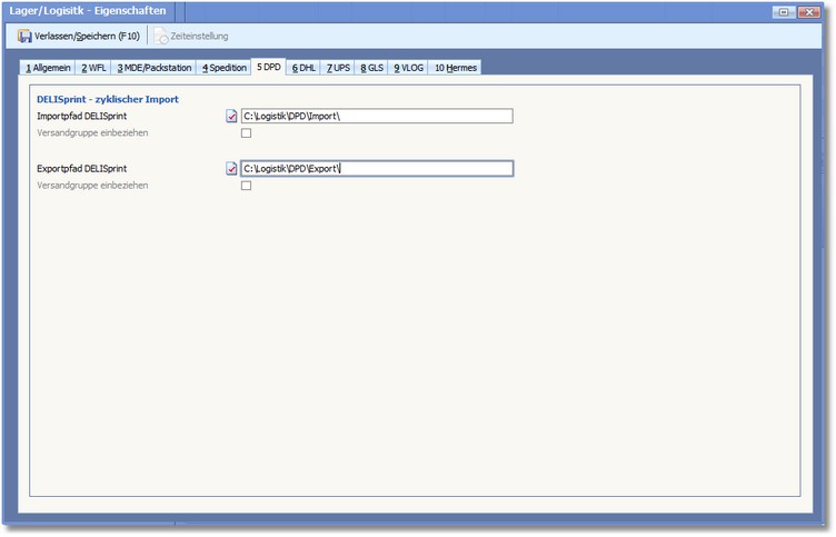 Legen Sie hier die Einstellungen für den Export/Import Ihrer Daten zur Logistik-Schnittstelle für die DPD-Software DELISprint fest.